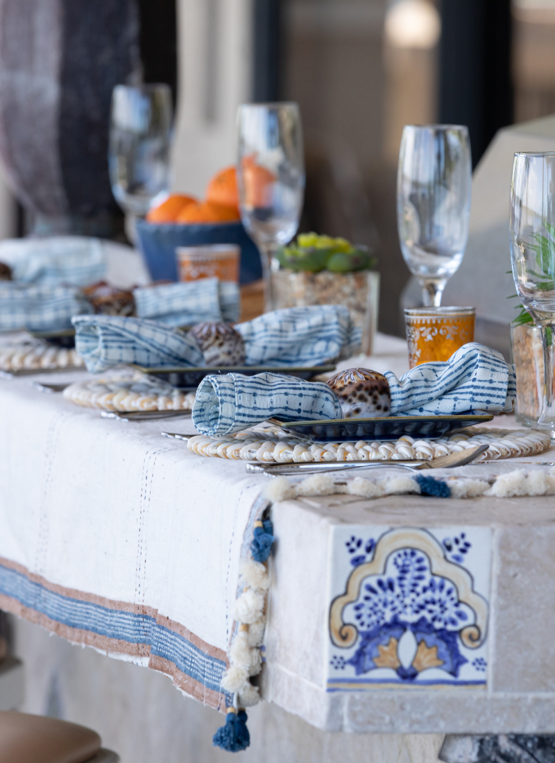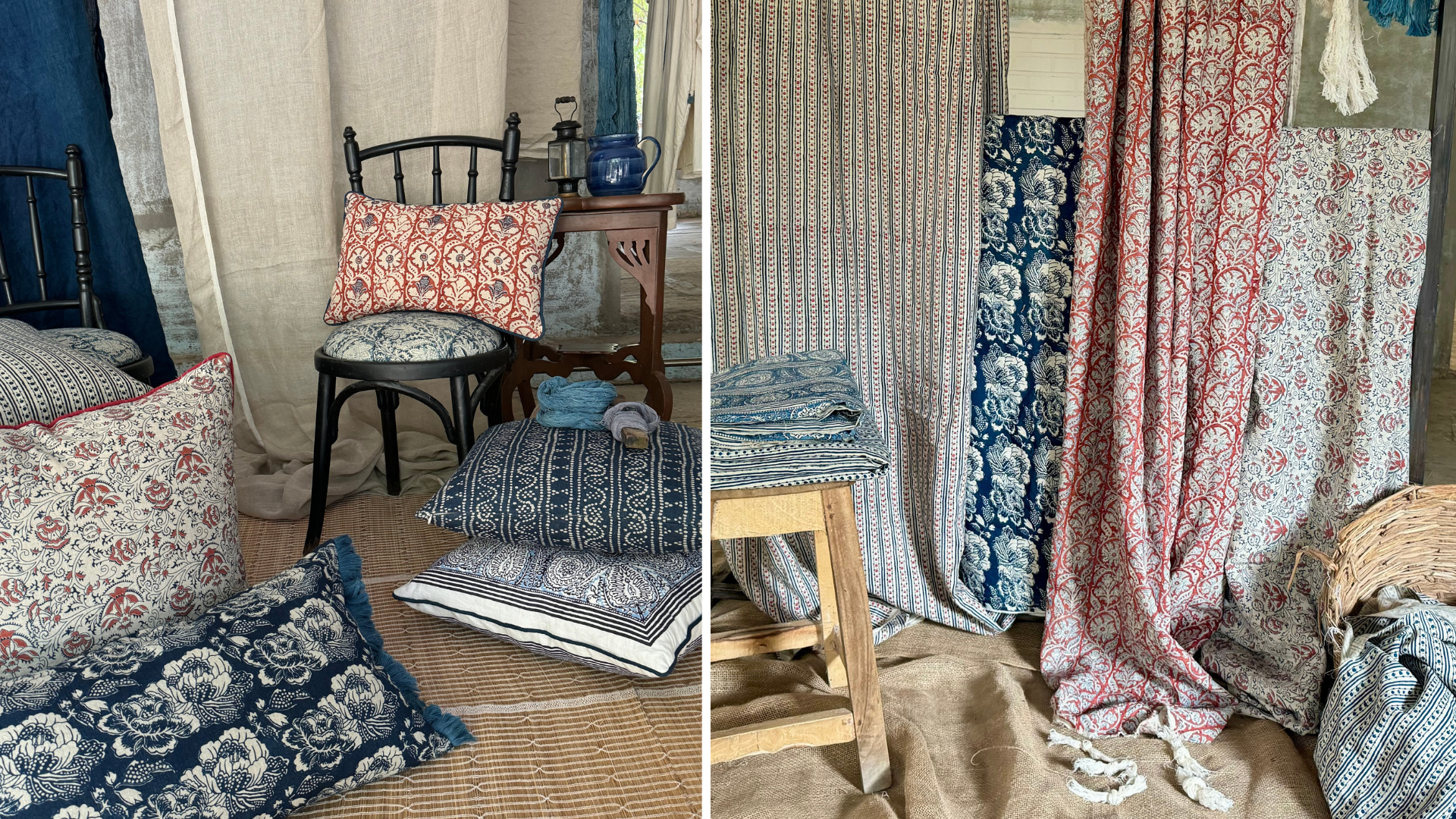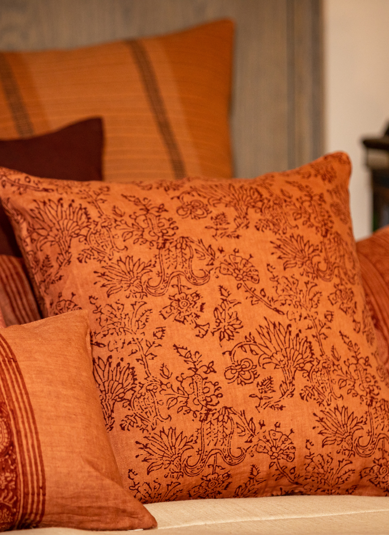 Madurai Cornflower Blue/Brick Red Pillow Cover