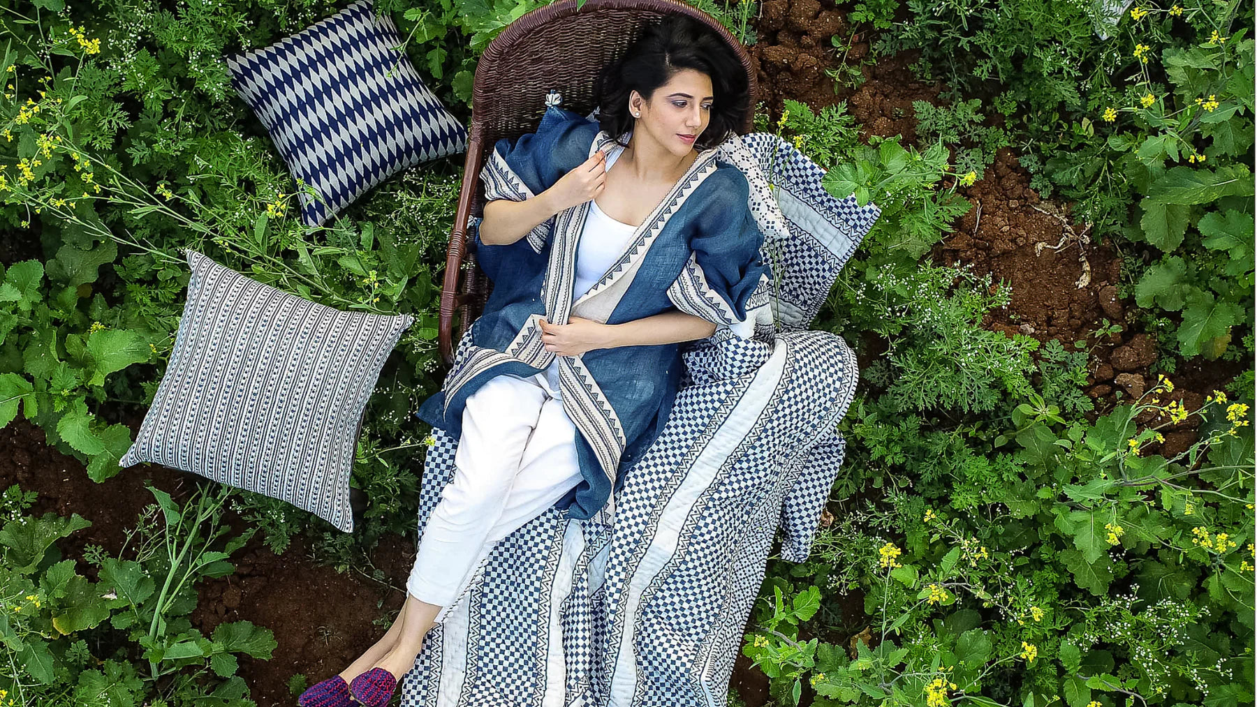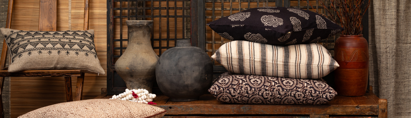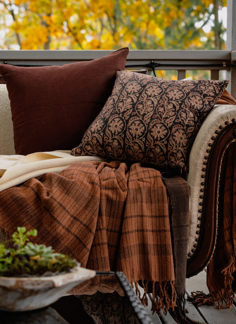 Grace Lucknow Lumbar Pillow Cover Natural Linen