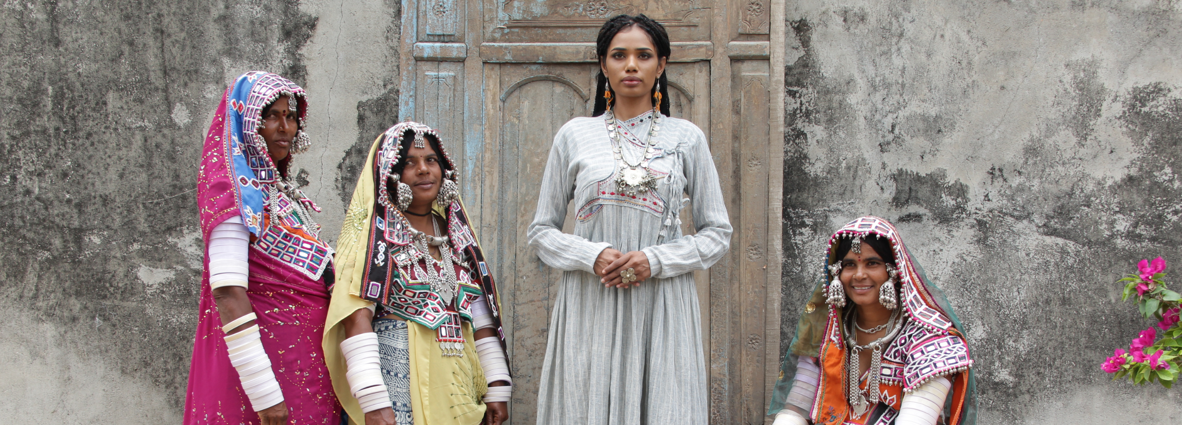 Our collections seamlessly blend our archival block prints with the Banjara's hand embroidery, resulting in unique, small-batch, handcrafted home goods and fashion pieces. Our collaboration with companies and co orporations has enabled us to position the work of the Banjara artisans to have a wider reach.