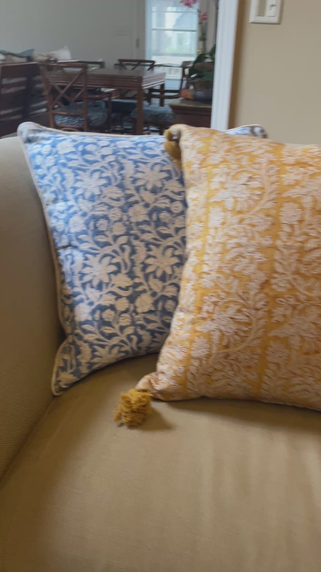 Care: Cold machine wash separately on a delicate cycle with a very minimal amount of mild liquid detergent. Do not dry clean, tumble dry, soak or bleach. Iron at medium setting if necessary. For spot cleaning, gently dab the area with water (do not rub). Keep out of direct sunlight to avoid excessive fading. Due to the nature of hand printed fabrics, variation in color and pattern may occur.