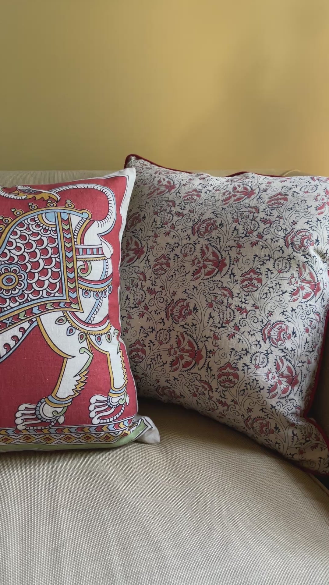 Lovely Jardin printed in Indigo and Brick Red. Sold as a pair.