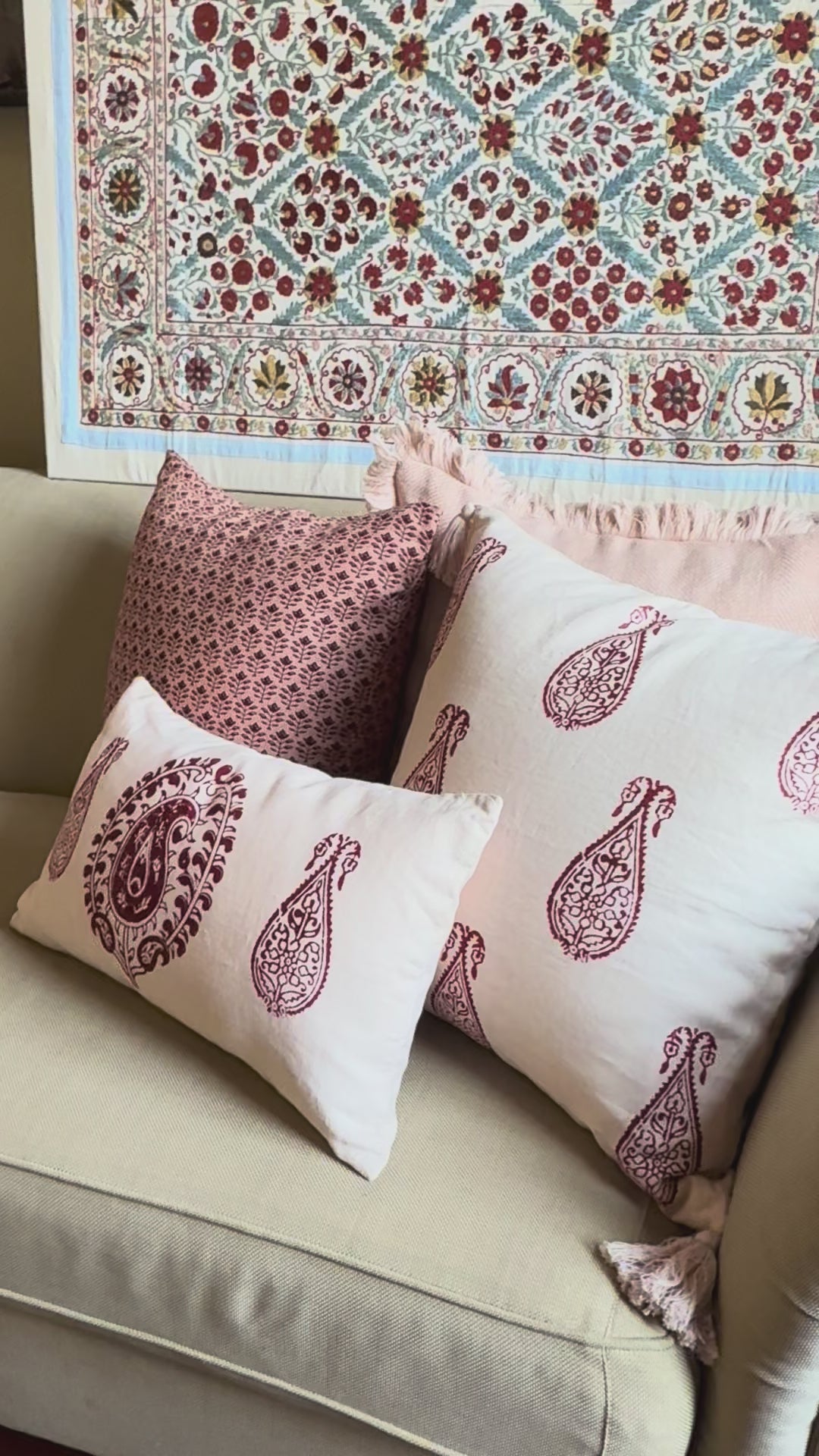 Hand printed on Natural Linen.